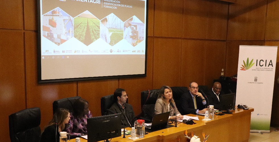 La consejera de Agricultura, Ganadería y Pesca del Gobierno de Canarias, Alicia Vanoostende, presentó el proyecto Cuarentagri en el marco del programa europeo INTERREG MAC 2014 -2020 coordinado por la Consejería a través de la empresa pública Gestión del Medio Rural (GMR) y que cuenta con la participación del Instituto Canario de Investigaciones Agrarias (ICIA), Universidad de La Laguna, Universidad de Azores, Fundación Gaspar Frutuoso de Azores, la Secretaría Regional de Agricultura y Pesca de Madeira, Universidad de Madeira, Universidad de Cabo Verde, Dirección General de Agricultura, Silvicultura y Pecuaria del Gobierno de Cabo Verde y su Instituto Nacional de Investigaciones (INIDA) y el insituto senegalés de Recherches Agricoles (ISRA).