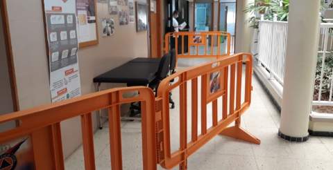 Con la colocación de estos elementos se favorece la adopción de medidas de seguridad regulando las distancias y facilitando la labor de los sanitarios. Además, la Concejalía de Sanidad ha realizado labores de desinfección tanto en el centro como en los exteriores.