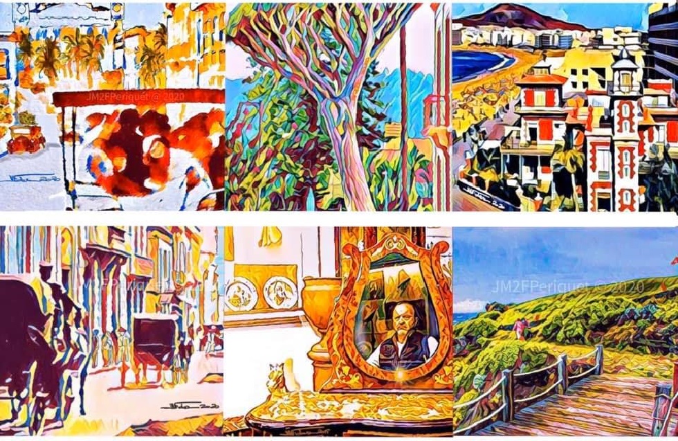 José Miguel Martin Fernandez Periquet, artista grancanario afincado en Tenerife, nos vuelve a deleitar con una obra en mini-collage donde la canariedad surge a raudales en estas estampas del pasado de Las Palmas y del presente en Tenerife.
