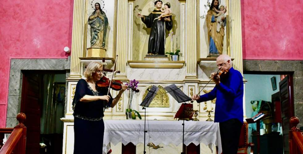 La Iglesia de San Antonio de Padua, en el casco de Mogán, acogió en la noche del sábado 25 de julio un concierto de la mano de dos violinistas de la Orquesta Filarmónica de Gran Canaria dentro del programa OFGC21 que recorre los 21 municipios de la isla.