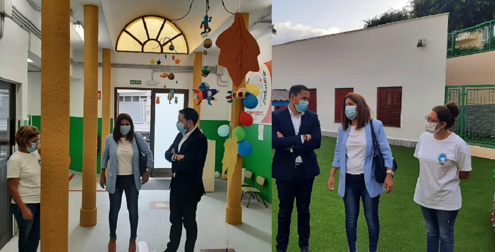 El alcalde de Telde, Héctor Suárez, y la vicealcaldesa, Carmen Hernández, visitaron hoy la Escuela Infantil municipal de La Herradura para comprobar de primera mano e interesarse sobre el funcionamiento de la misma durante esta primera semana tras su reapertura después de 7 años cerrada.