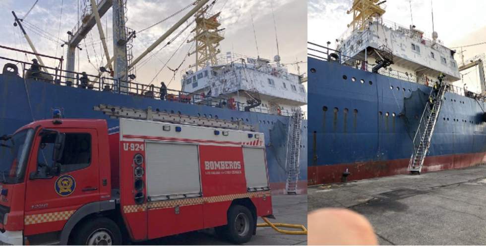 El Cuerpo de Bomberos de Las Palmas de Gran Canaria ha informado que a las diez de esta mañana, dia de Navidad, han concluido los trabajos de extición del incendio en el pesquero ruso Sveaborg que se incendió ayer tarde en la Darsena Sur del Muelle Grande en el Puerto de la Luz.
