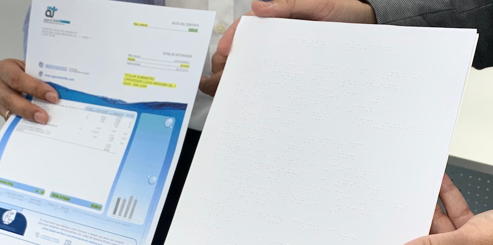 Por su parte, el gerente de Aguas de Telde explicó el funcionamiento del nuevo sistema que han implementado a través de un convenio con Ilunion, Fundación Once, y apuntó: “Las personas no videntes pueden solicitar su factura en braille llamando al centro de atención telefónico (CAT) en la propia oficina o en cualquiera de nuestros canales de atención al cliente. Cada bimestre, en los mismos plazos establecidos que el resto de clientes, enviaremos la factura con los datos del usuario, periodo de facturación, consumo y total a pagar en este sistema de lectura táctil, sin coste añadido”.