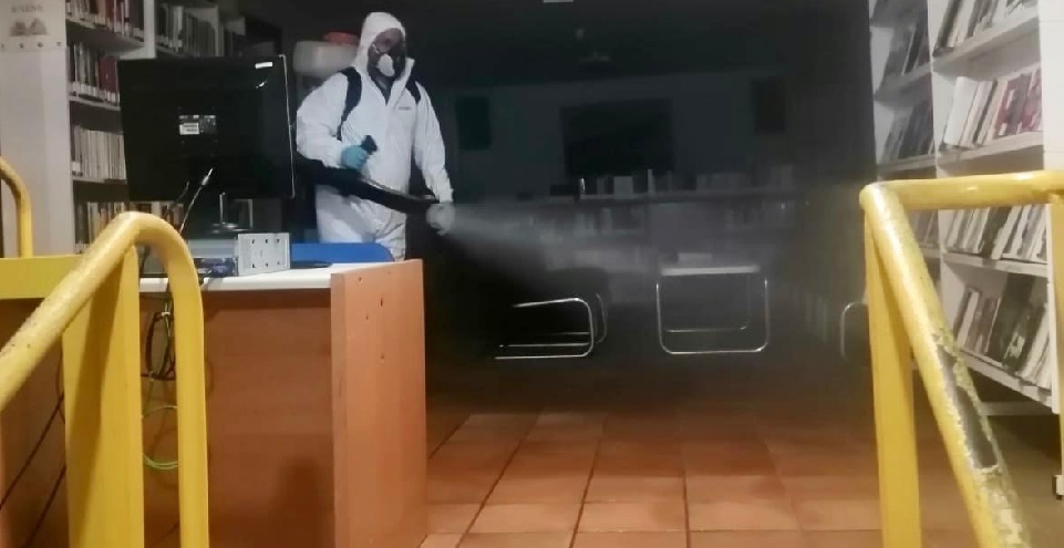 Para ello, la Concejalía de Cultura y la empresa pública Gestel están procediendo a la desinfección del Teatro Municipal Juan Ramón Jiménez, las bibliotecas y la Escuela Municipal de Música, que serán  los primeros centros en abrir.