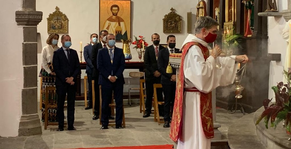 La Eucaristía fue oficiada por el conocido párroco de Agaete, el Padre Ricardo Miranda que luego departió con todos los presentes, todo ello en un ambiente de estrictas medidas de seguridad anticovid y con aforo muy reducido.