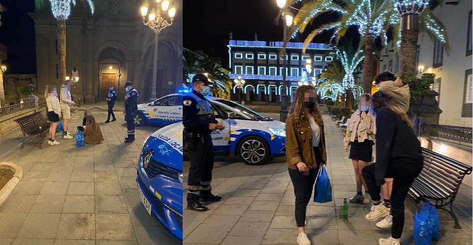 La intensa actividad de toda la Policía Local capitalina ha impedido multiples reuniones al aire libre, previas a montarse el clásico botellón, que actualmente está totalmente restringido por las medidas anticovid establecidas para la noche de fin de año y ahora para este puente víspera de Reyes.
