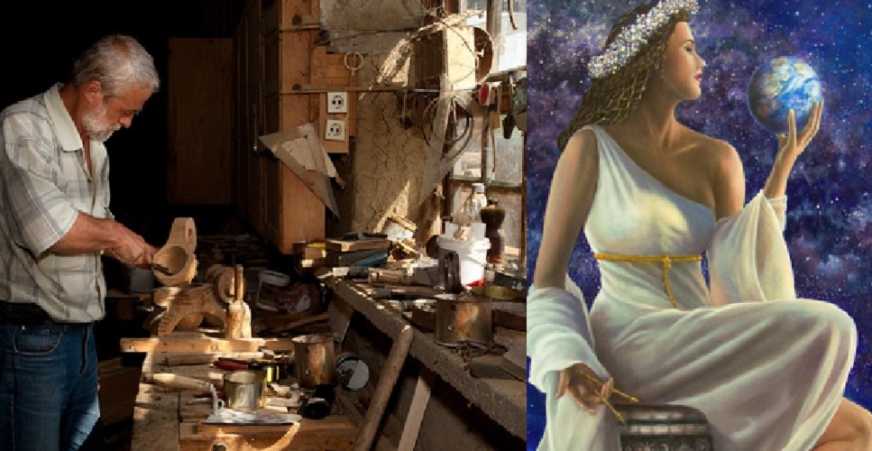en manos del artesano.