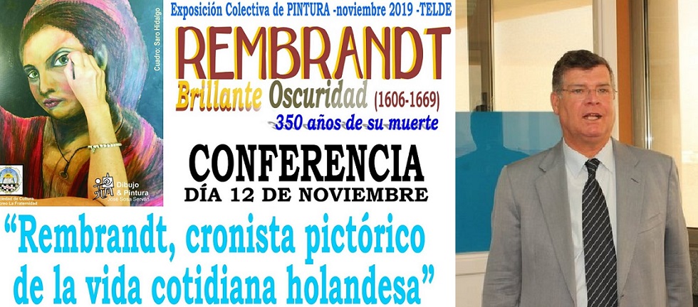 La conferencia titulada "Rembrandt cronista pictórico de la vida cotidiana holandesa" será impartida como ponente por el Cronista Oficial de Telde, el Profesor Antonio María González Padrón, cuya especialidad en Historia del Arte ha quedado siempre en un segundo plano frente a su labor cientifica en el Museo Leon y Castillo para convertirlo en referencia nacional de la historia económica de finales del siglo XIX y principios del XX, ademas del estudio y conservación del legado de D. Fernando León y Castillo y de su hermano, el Ingeniero Juan León y Castillo.